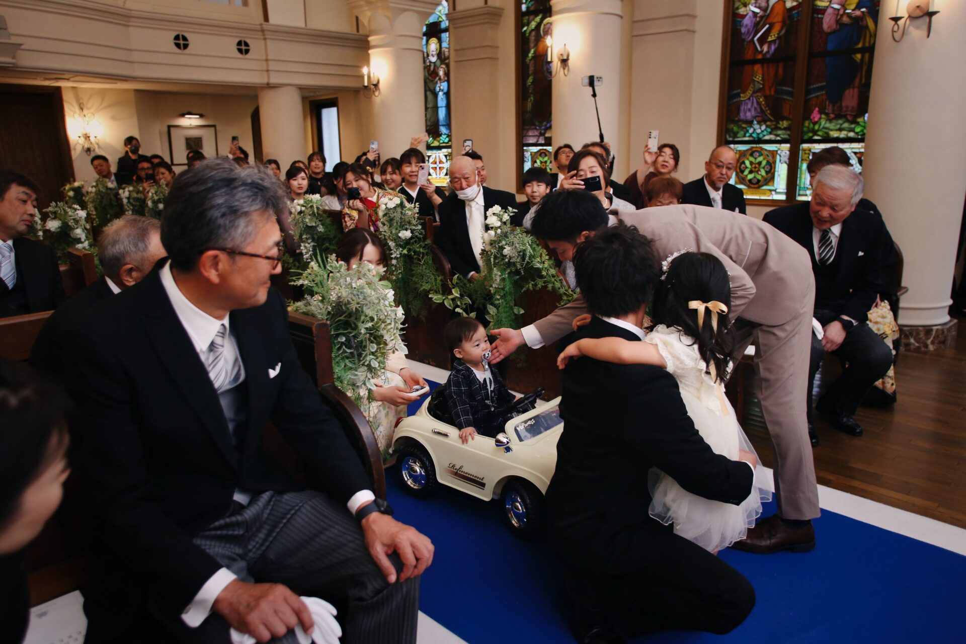 2人の大事な結婚指輪を、大切な子供が運んできてくれた姿はとても愛おしく貴重な時間でした。